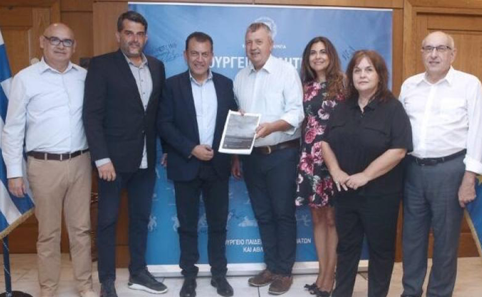 Την ολοκληρωμένη Μελέτη για την «Ανάπτυξη του Ερασιτεχνικού Αθλητισμού με κριτήρια Βιωσιμότητας», από το Τμήμα Οργάνωσης και Διαχείρισης Αθλητισμού του Πανεπιστήμιου Πελοποννήσου, παρέδωσαν σήμερα στον Αναπληρωτή Υπουργό, Γιάννη Βρούτση, ο προεδρεύοντας του τμήματος και επιστημονικός υπεύθυνος του Έργου, καθηγητής Γεώργιος Κυπραίος και μέλη της συντακτικής ομάδας της Μελέτης.